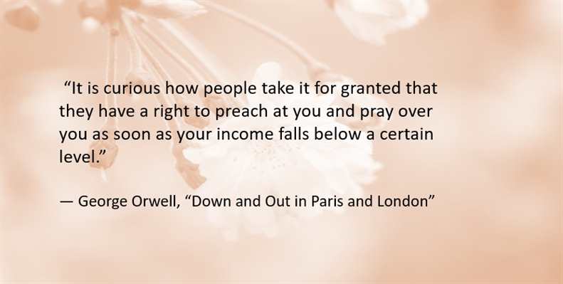 When a friend is down and out, don’t give suggestions. There should be actions to help rather than just verbal suggestions. In the book “Down and Out in Paris and London” by Orwell, he described his self imposed hard life first in Paris then in London after he quit his colonial position in Burma. People gave him suggestions without the understanding that he wanted to be a writer and didn’t want a regular office job. Those suggestions only infuriated Orwell and did nothing to help him.