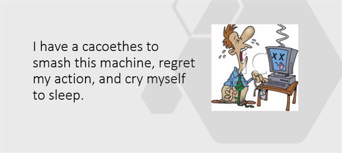 I learned this word “cacoethes” from Vivi’s poem entitled “Cacophony”. It means “an irresistible urge to do something inadvisable.” I know this urge. I did once have this urge to smash my Kindle Fire tablet when it stopped responding. I didn’t have the time to fish out the hammer from the toolbox. Instead I threw it to the wall, making one small dent and a slightly bigger dent.